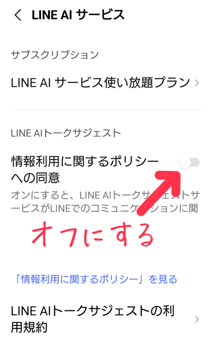 → 情報利用に関するポリシーへの同意をOFFにする