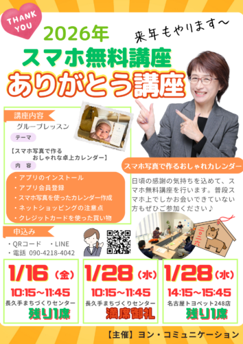 2026年【ありがとう♪ スマホ無料講座開催】年始の感謝を込めて。来年も「ありがとう講座」を開催します